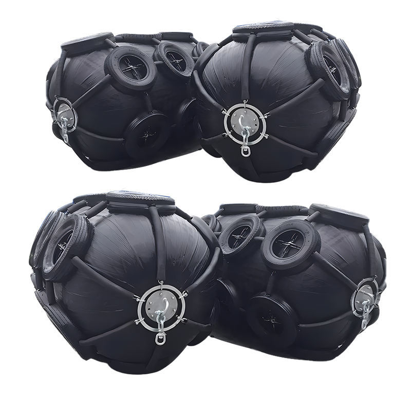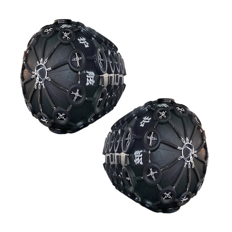 - Typical Specifications: Specifyed in "diameter × length" (e.g., 500mm × 1000mm to 4500mm × 12000mm), initial inflation pressure is typically 0.05-0.08MPa, energy absorption is 6-9037KJ, and reaction force is 64-10490KN (specific details vary depending on specifications). - Structural Form: The main body is a cylindrical inflatable rubber bladder, with metal flanges at both ends (including inflation valves and safety valves). The outer layer is evenly wrapped with wear-resistant tires, secured by high-strength chains, forming a double protective layer.